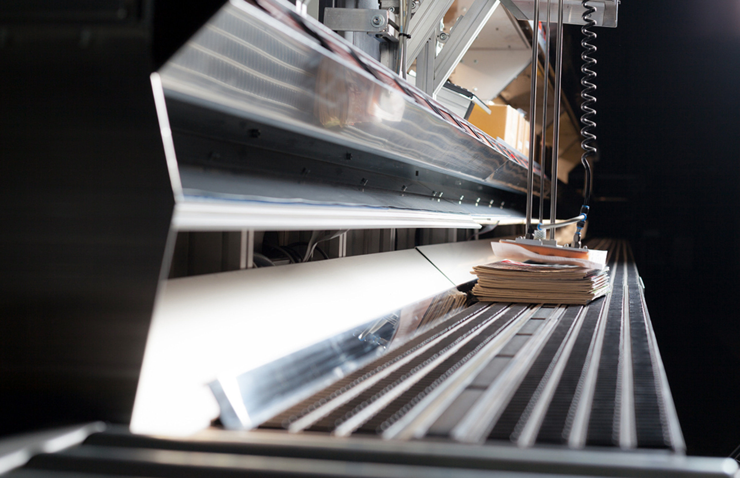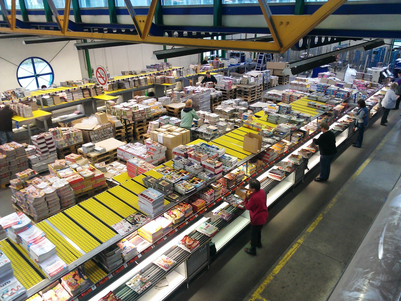 TOP ist eine Kommissionierstrecke, die in 2m Segmente unterteilt ist und daher auf jede beliebige Größe angepasst werden kann. Sie besteht aus mehrstöckigen Durchlaufkanälen, wobei jedem Kanal ein Display und somit ein Titel zugeordnet werden kann. Dabei ist die Anzahl der Kanäle von Versand zu Versand variabel. Am Ende der Strecke stehen zwei Lieferscheindrucker bereit für den Druck des Ist-Lieferscheins für jedes Paket.